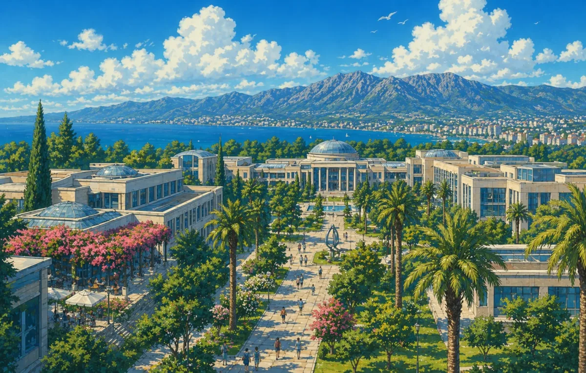 📍 Yerleşke Yapısı: Antalya merkeze entegre, düz bir alan üzerine kurulu, çam ağaçlarıyla dolu geniş Merkez Kampüs.